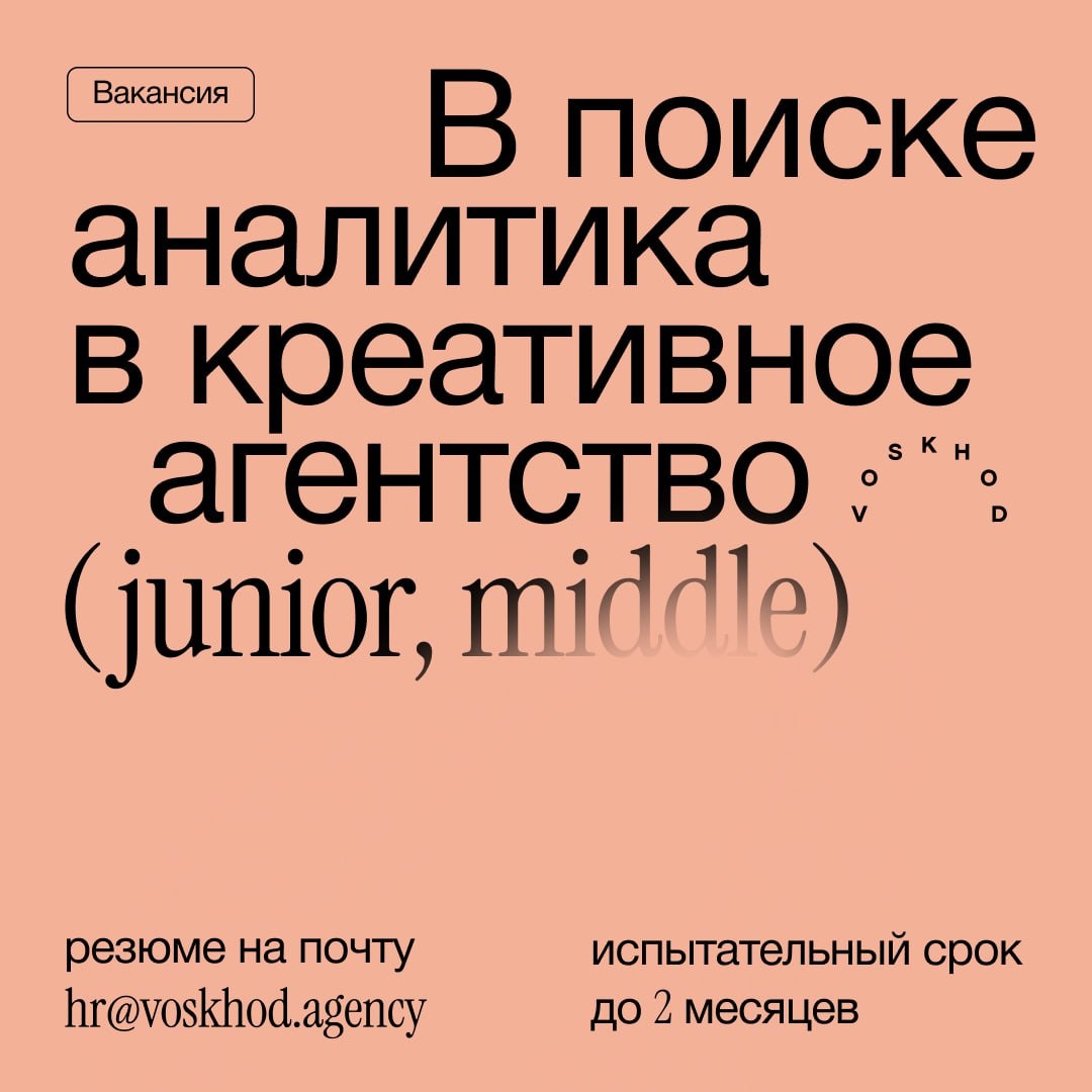 #Вакансия аналитика в Восходе (уровень junior или middle) Чем предстоит заниматься: 🟡Работа с большим объемом данных из открытых источников (поиск, структуризация, подготовка аналитических отчетов) 🟡Конкурентный анализ и анализ рынка 🟡Проведение исследований: составление анкет, запуск опросов, интерпретация результатов, подготовка презентаций по итогам исследования Требования: 🔘Опытный пользователь Excel, владение IMB SPSS (для junior-специалиста — опционально), PowerPoint 🔘Аналитический и математический склад ума, ответственность, внимательность, обучаемость и умение самостоятельно находить информацию 🔘Высшее образование (Экономика/Социология/Маркетинг) 🔘Знание основ маркетинга, брендинга 🔘Знание английского языка от B2 (Upper-Intermediate) для работы с иностранными источниками Испытательный срок — до 2 месяцев только офлайн. 💬 Ждем резюме на почте: hr@voskhod.agency