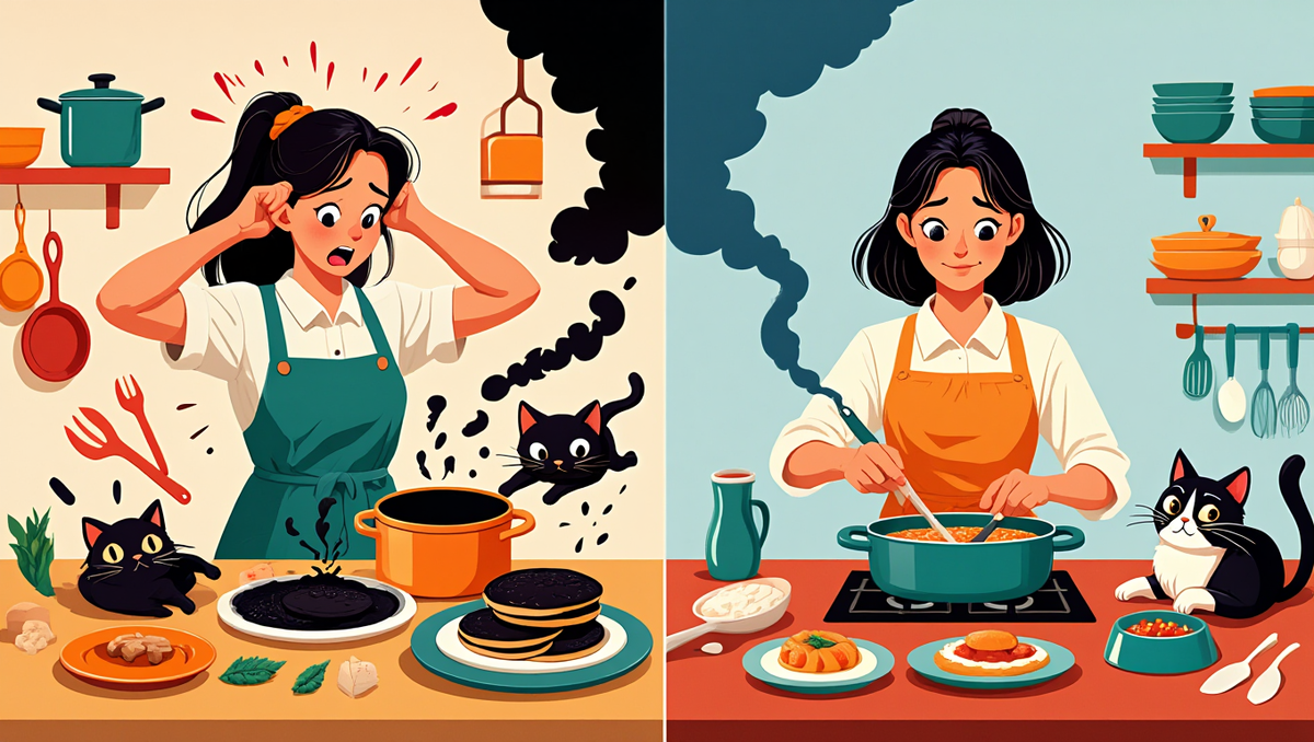 Помню свою первую попытку сварить суп. Взяла рецепт из интернета, все как положено: картошка, морковка, лук. Режу овощи, думаю — ну что тут сложного? Бросила все в кастрюлю, посолила... и пересолила. Настолько, что даже кот отказался пробовать. А мой кот ел все подряд, включая мои носки.