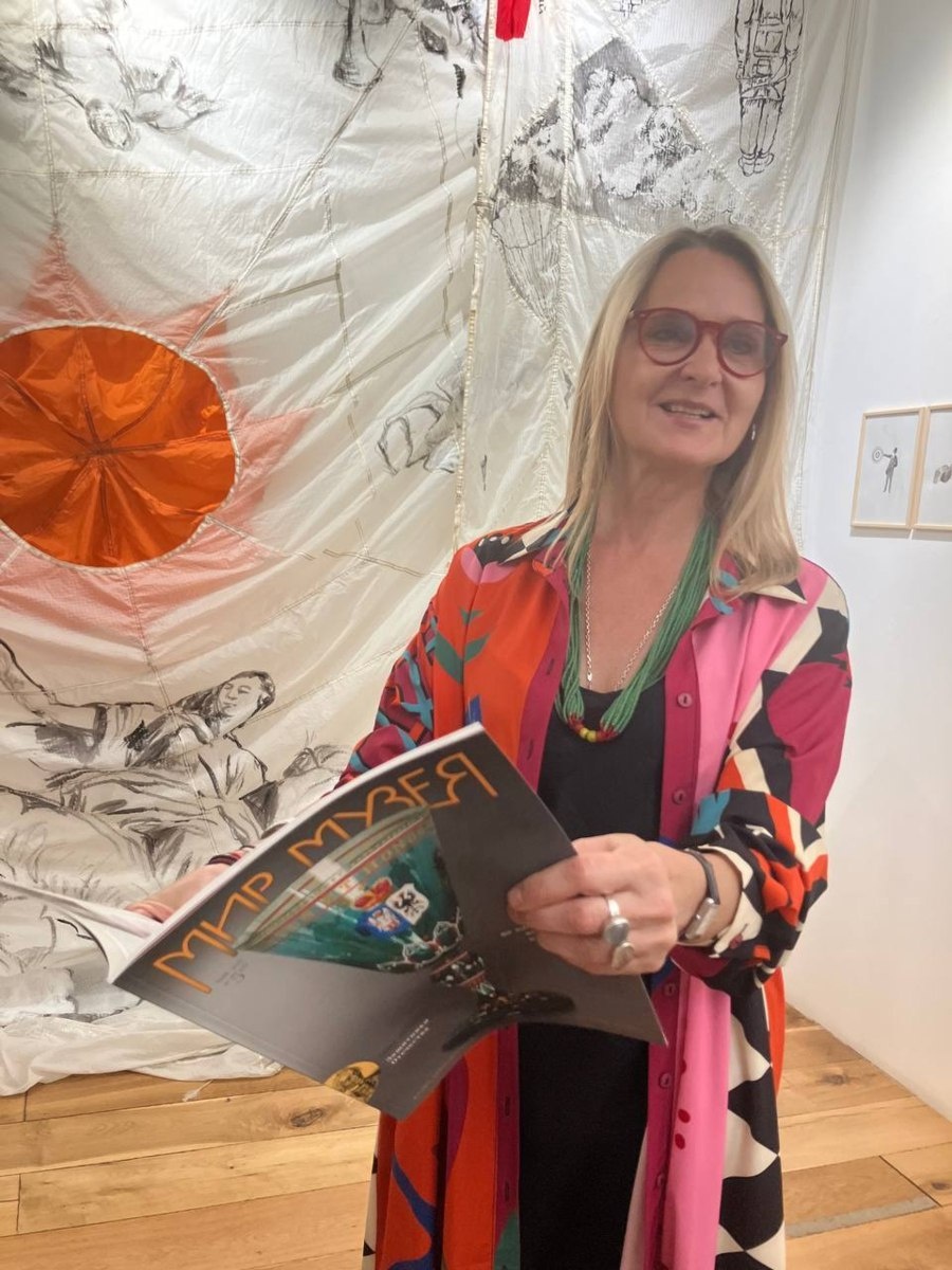 3 июня 2025 года в галерее «Треугольник» на Винзаводе открылась выставка Катерины Ковалёвой «Мера тяжести». На выставке представлена серия акварелей из цикла «Зона ожидания», а также крупноформатные работы, выполненные художницей на советских парашютах, некогда летавших в небе. О выставке Катерины Ковалёвой в Бразилии читайте в майском номере журнала «Мир Музея». На фото: художница с авторским экземпляром журнала. #мирмузея #винзавод