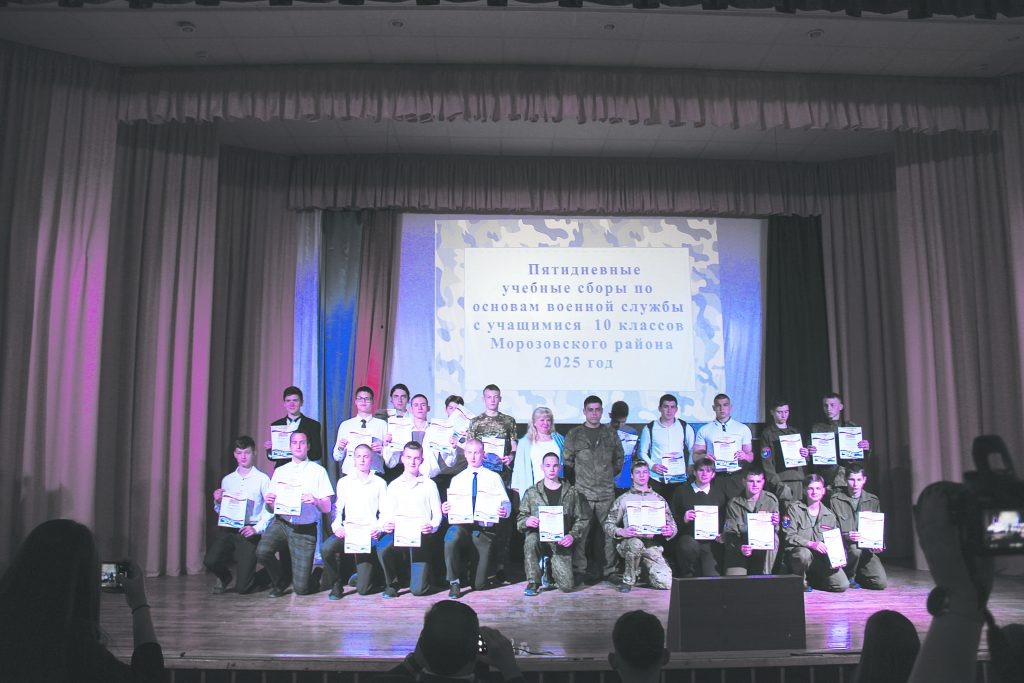 23 мая в 60 Доме офицеров состоялось торжественное закрытие пятидневных учебных сборов по основам военной службы с учащимися 10 классов Морозовского района за 2025 год. С успешным завершением этого важного этапа обучения участников поздравили заведующий отделом образования Администрации Морозовского района Марина Гвозденко и старший специалист-эксперт военного комиссариата Ростовской области младший лейтенант Владимир Бауткин. Они пожелали ребятам достижения поставленных целей, новых побед и, конечно же, наградили победителей. А их немало. Абсолютными победителями в отрядных соревнованиях разной направленности (шифровка, медицина, разборка/сборка АК74, история Великой Отечественной войны, перетягивание каната и другие) стали школа №3, гимназия №5 и казачий кадетский корпус, каждый в своей категории. В личном зачете по метанию гранаты первым стал Александр Бабич (гимназия №5), а в жиме гири победил Максим Галушкин — учащийся того же учебного заведения. Завершилось мероприятие выступлени