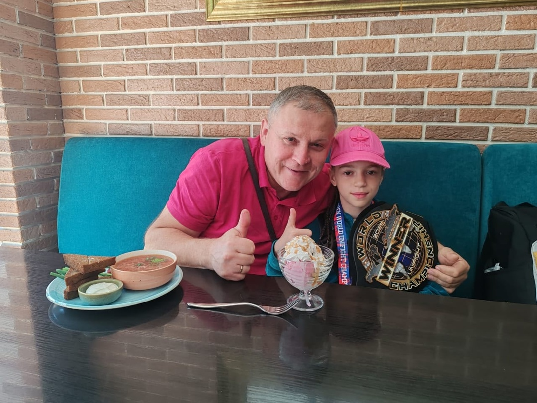 СОЗИДАТЕЛЬ И СКАЗИТЕЛЬ ЮРИЙ БЕЛОУСОВ Кандидат в мастера спорта РФ Александра Сидорова (Гаджимурадова) - мама победительницы Первенства мира по универсальному бою 2025 года Джеверат Гаджимурадовой, занималась долгое время у Заслуженного тренера РФ по тайскому боксу Юрия Алексеевича Белоусова и могла в свое время, стать чемпионкой мира по муайтай, но ее призвание было в другом - подвиг, достижения, результат в рождении детей и воспитании многодетной семьи. Стать мамой героиней и быть обладательницей 6 красивых детей и 2-х внуков - огромное счастье! Именно Юрий Алексеевич Белоусов рекомендовал Александре Гаджимурадовой отдать своих детей - Медину, Багадина, Шамиля и Джеверат к тренеру Александру Гергерт и благословил их. Юрий Алексеевич Белоусов проделал маршрут из г. Воскресенска до г. Домодедово, чтобы лично поздравить Джеверат с победой и выбрать самое вкусное для чемпионки мороженое, пообщаться, подписать и передать всем участникам Калининградской сборной команды Первенства мира свои