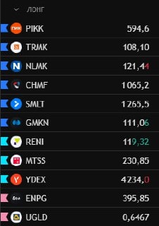 АКЦИИ В МОЕМ СПИСКЕ НА СЕГОДНЯ НА СКРИНАХ 🤓 Сначала смотрим на общий фон и только потом принимаем какие-либо решения ☝️ многие улетели вверх уже на утренней сессии. Давал в Подробном видео обзоре Особо выделяю к просмотру: 🟢Для Лонга $PIKK Вылетели вверх уверенно из боковика на крупных свечах и повышенном объеме. Сейчас смотрим за коррекцией и ищем покупки. Главное, чтобы не было агрессивных продаж. $TRMK Акция была у нас в инвестиционном списке, так как находилась на глобальных минимумам. Увидели вчера сильный рост. Эти покупки самые сильные за последнее время. Уже ставим плюсик на этом. Сейчас наблюдаем за коррекцией, в которой нет агрессивных продаж. Если так же продолжим расторговываться в боковике, то с большей вероятностью будем пробовать выходить выше. $UGLD Расписал все на графике. Сильные покупки, поджатие минимумов и отсутствие агрессивных продаж. 🔴Для Шорта ___ У остальных акций много нюансов. Уже во время сессии будем рассматривать остальные. Поэтому не забудьте п