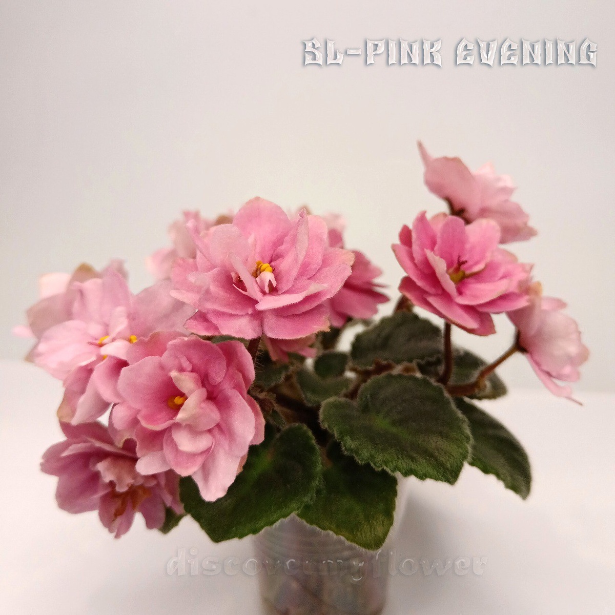SL-Pink Evening. Мини сенполия. Цветы очень крупные относительно размеров розетки. Махровые лососево-розовые звёзды с серебристым оттенком и очаровательными салатовыми "ушками" на лепестках. Розетка ровная, послушная. Лист крепкий, опушенный, в форме сердечка. ♥ Черешки и цветоносы красноватые, толстые. Сорт очень люблю за беспроблемную идеальную розетку и очаровательные цветы — всегда прекрасной правильной формы, вкусного оттенка сочной арбузной мякоти. Пока цветы молодые, на внешних лепестках отчетливо видны зеленоватые типсы. По мере созревания цветка эта зеленца становится менее заметной и постепенно уходит. #фиалки #геснериевые #сенполии #минифиалки #сортафиалок