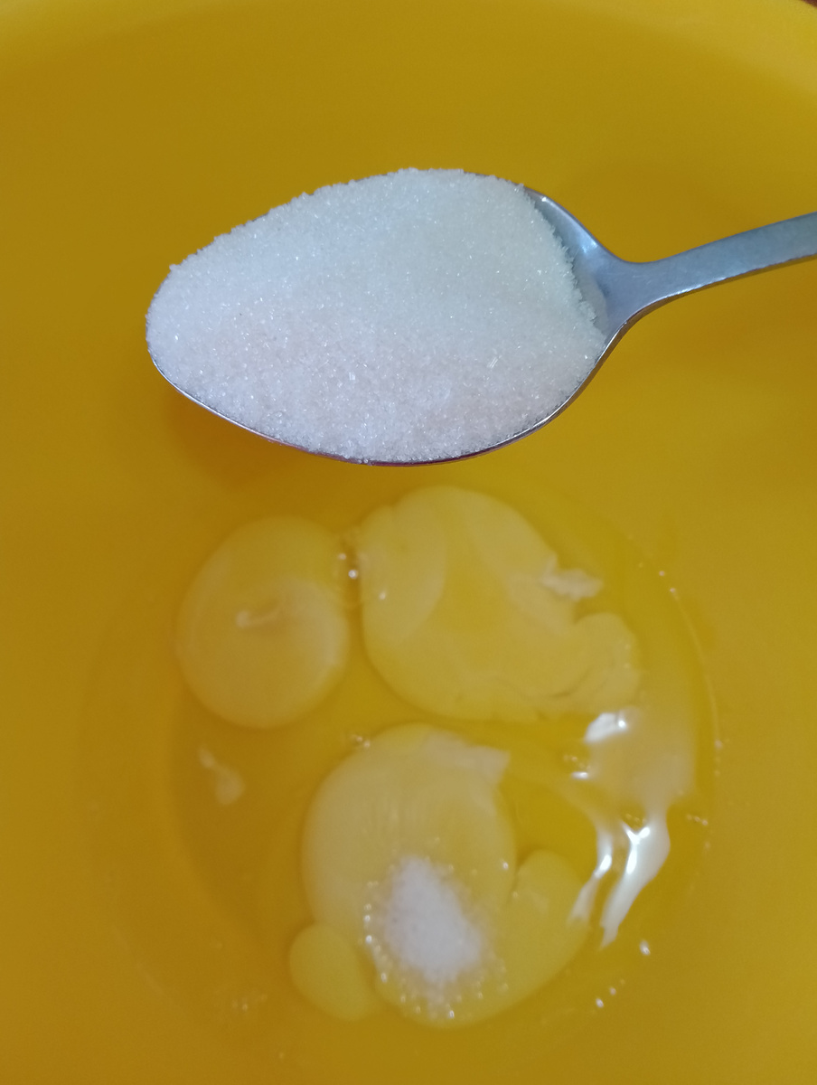 Нам понадобится 3 яйца, столовая ложка сахар и щепотка соли