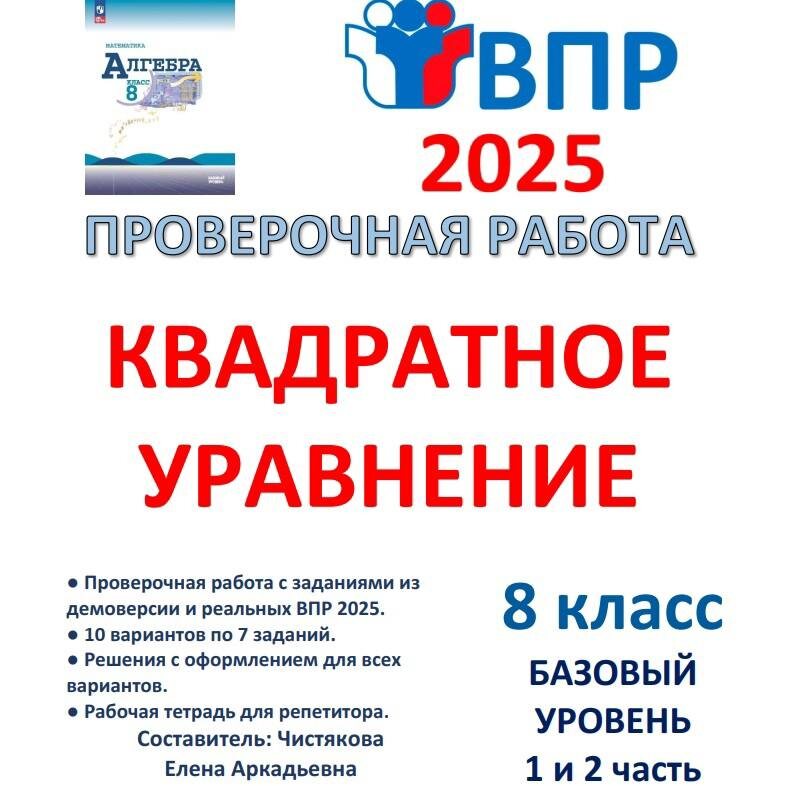 ❗Внимание❗✨Новинка✨ 🆗ВПР 8 класс Математика Проверочная работа "Квадратное уравнение" 📥 Скачать на WB: digital.wildberries.ru/offer/482257 Составлены из всех заданий демо-версии и реальных вариантов 2025 года , которые нам удалось найти по данной теме. 3 файла PDF: 🔹файл для учителя (10 вариантов по 7 заданий, 2 страницы); 🔹файл с подробными решениями для всех вариантов (11 страниц); 🔹файл репетитору для двух вариантов со свободным местом для записи решения (4 страницы). В течение всего учебного года в процессе изучения каждой темы сможете попутно прорешивать задания из ВПР. 📚 Все материалы в таблице: vk.cc/cHlmAx