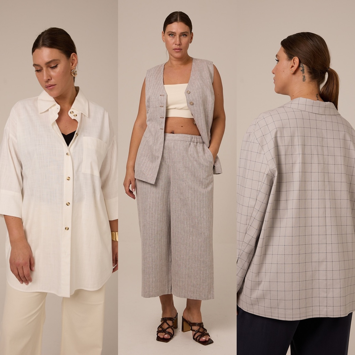Лён после стирки даёт естественную усадку. Поэтому: Именно поэтому льняные костюмы и платья изначально имеют свободный, воздушный силуэт — это не только красиво, но и грамотно с точки зрения носки. В нашей новой коллекции вы найдёте льняные вещи из благородных евро