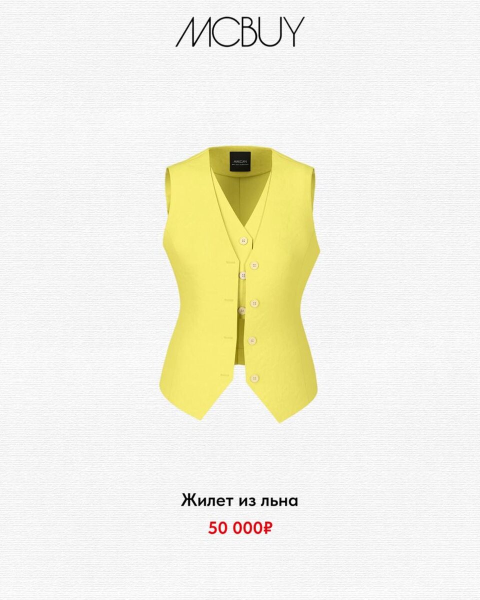 Вещь недели – жилет из льна Приталенный крой подчеркнет фигуру, придавая образу элегантность и современность. Такой жилет легко сочетать с различными вещами — от классических брюк до джинсов. Желтый оттенок в тренде этого сезона – ещё одна причина приобрести универсальную вещь в свой гардероб 💛 Жилет представлен всего в нескольких экземплярах. Заказать можно на сайте mcbuy.ru или позвонив, в один из бутиков: Санкт-Петербург: 📍Большой проспект П.С., 60 +7 (921) 425-79-75 📍Галерея бутиков Grand Palace Невский, 44/ Итальянская, 15 +7 (921) 425-69-33 📍ТРЦ Галерея Лиговский проспект, 30 +7 (921) 098-62-56 📍Атлантик Сити Савушкина, 126 +7 (921) 425-69-26 Москва: 📍ТЦ Метрополис Ленинградское шоссе, 16А +7 (921) 369-54-65 📍ТЦ Павелецкая Плаза Павелецкая площадь, 3 +7 (921) 369-46-95
