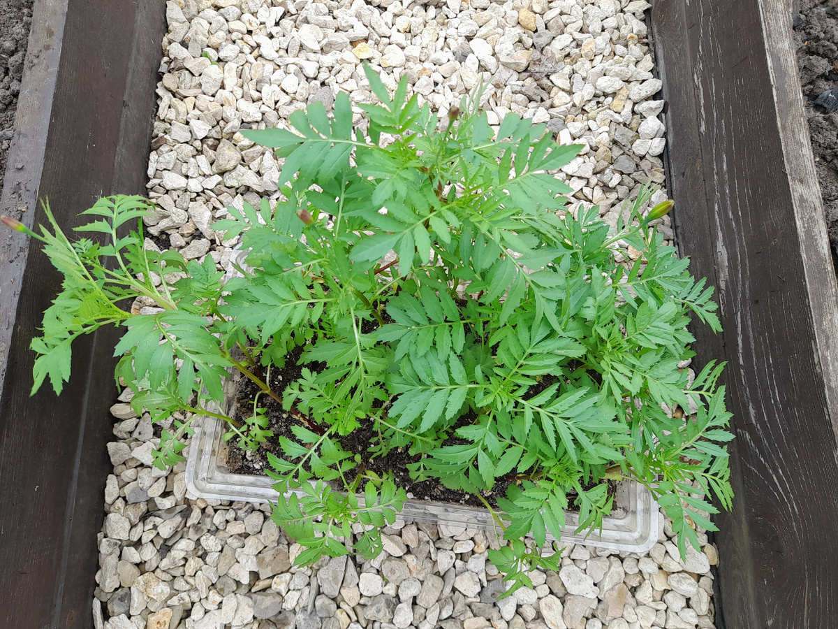 В этой статье пишу о том, чем мы занимались на огороде 18 мая. Сейчас 28 мая, времени на статьи у меня не было, но для истории написать нужно. Каждый год я перечитываю прошлогодний материал, делаю выводы, сравниваю результаты. Возвратные заморозки закончились и мы посадили все, что боится морозов. По краям грядок посадили бархатцы. Я их очень люблю, но выращиваю только на огороде. С рассадой тыкв и кабачков у нас случилась смешная история. Я посеяла в рассадные ящики семена, положила на них пакетики, сфотографировала, пакетики убрала и затянула пленкой. Поставить бирки с названиями забыла. И вот у меня два ящика, а в них непонятно что. Толи тыквы, толи кабачки. По фотографиям стали искать различия в ящиках, хорошо хоть они немного разными оказались. Один поуже, другой шире. Разобравшись, рассаду рассадили на ПМЖ. Тыквы как всегда к шпалере и на компостник, а кабачки на грядки. Патиссоны в этом году взошли, а в прошлом из этого же пакета не было ни одного. Посадила парочку. Из всей к