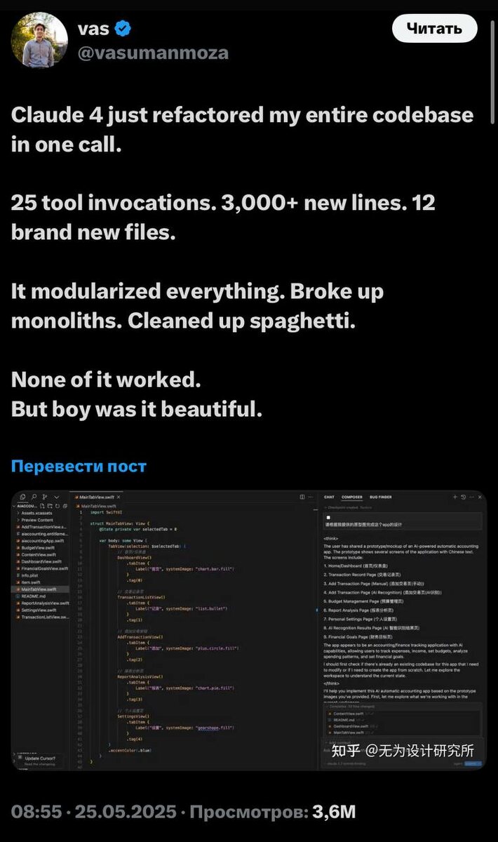 Claude 4 только что рефакторил всю мою кодовую базу за один вызов.