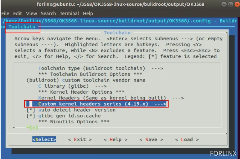 Откройте графический интерфейс конфигурации Buildroot и проверьте следующие параметры.