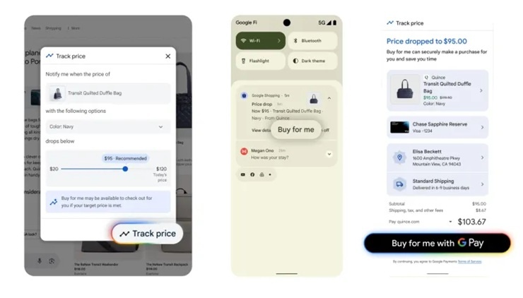 нажимает «купить для меня». Затем Google добавляет товар в корзину на