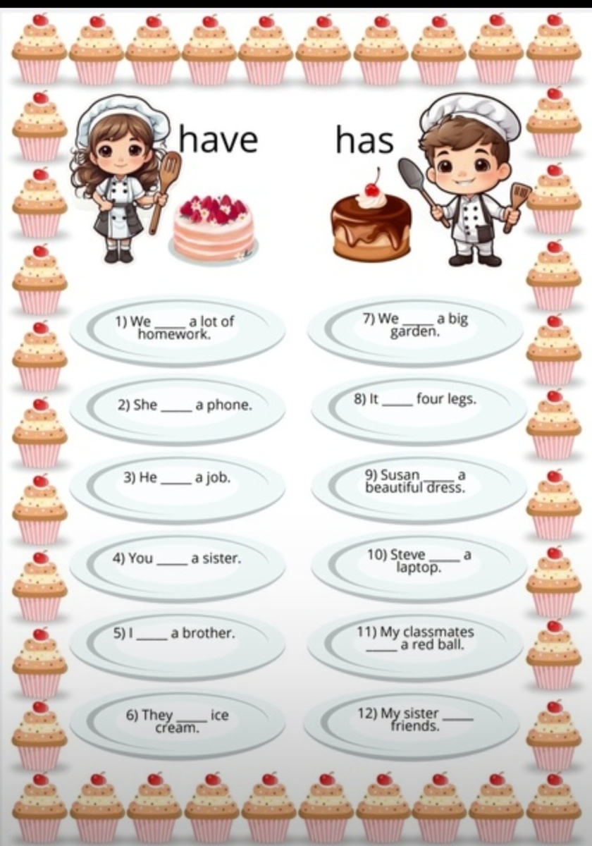 Ответы: have 1,4,5,6,7,11 has 2,8,10,12