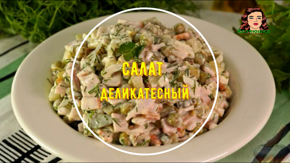 Салат "Деликатесный" с ветчиной и маринованными огурцами