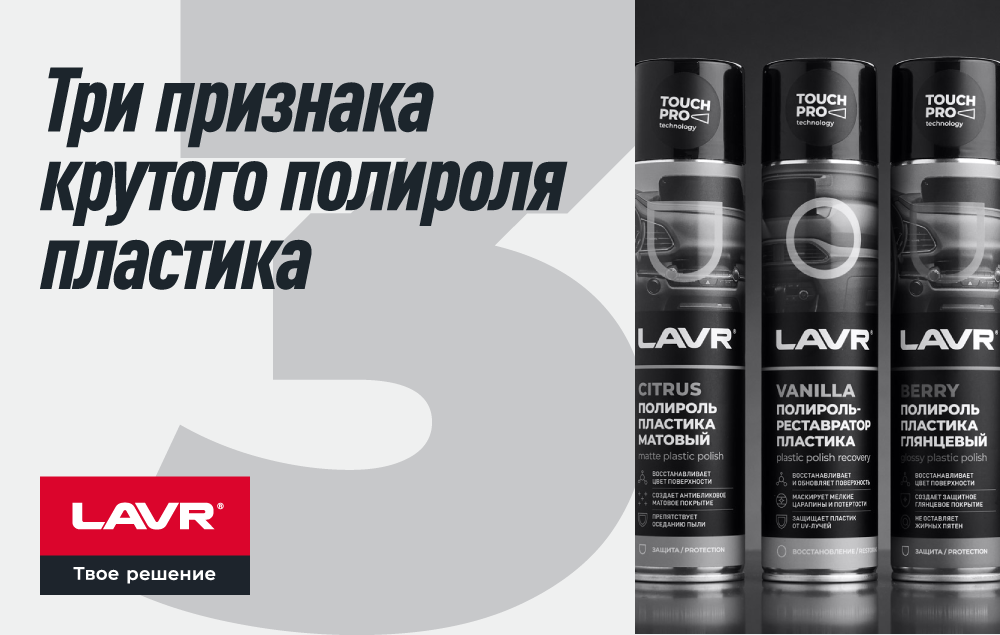 Пластик в салоне бросается в глаза сразу. Чистота, отсутствие пыли, видимых царапин и потертостей сразу дают понять: водитель – аккуратист. Таксуешь, встречаешь тещу или везешь девушку на первое свидание – сделай так, чтобы в машине было приятно. А мы подскажем, как выбрать правильное средство для ухода за пластиком. Способность замаскировать дефекты и долговечность эффекта – самые очевидные критерии хорошего полироля пластика. Обычно оценить их можно уже после применения, но можно ориентироваться на отзывы на маркетплейсах, репутацию бренда и рекомендации знакомых. Хорошие полироли сохраняют эффект несколько недель. Но только если соблюдать два главных условия: Во-первых, любой уход за пластиком необходимо начинать с очистки от загрязнений. Для этого подойдет Очиститель-кондиционер пластика, он удаляет сложные и въевшиеся загрязнения и устраняет запахи. В крайнем случае можно протереть поверхность чуть влажной тканью или салфетками для пластика. После очищения можно приступать к нане