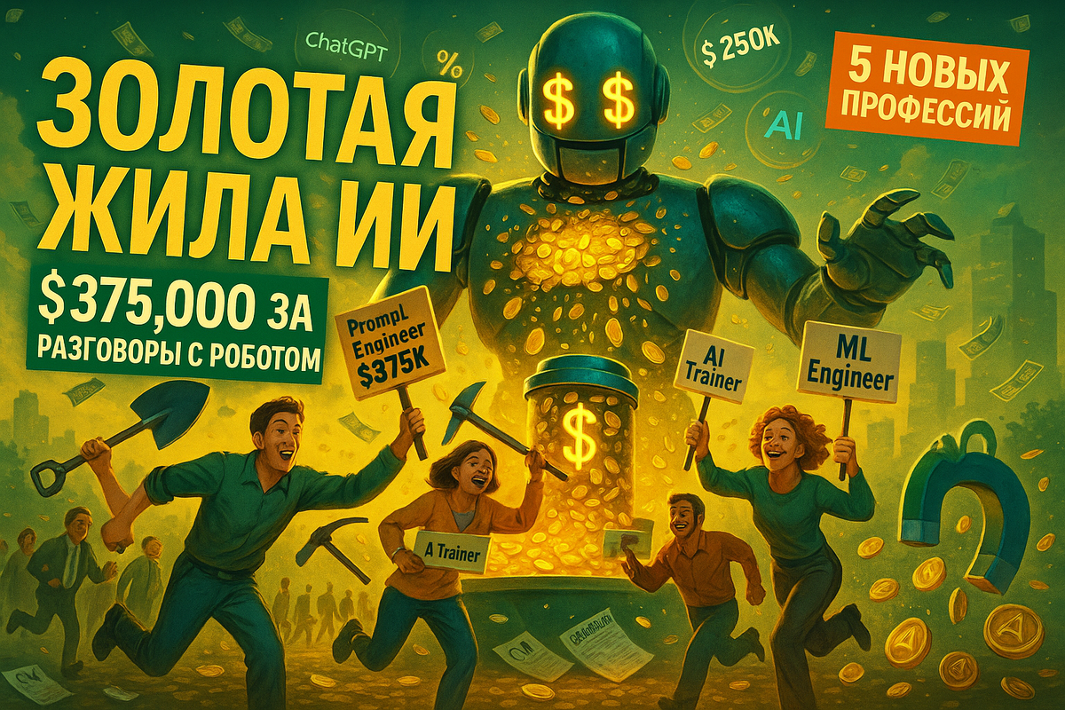 Пока все паникуют, что искусственный интеллект отберет рабочие места, умные люди уже зарабатывают на этой революции. Появились совершенно новые профессии, о которых никто не слышал еще 3 года назад. И платят там... приготовьтесь удивляться! 🚀
