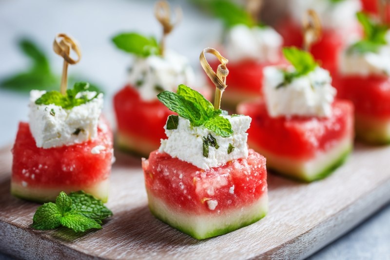 Этот салат – идеальный выбор для жаркого дня. Арбуз отлично освежает, а мята добавляет пикантности.
