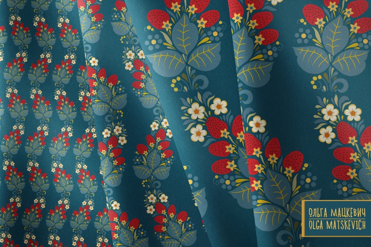 Земляника на моховой поляне. Принт по мотивам хохломской росписи (хохломы) Этот очаровательный принт для текстиля представляет собой живописную моховую поляну, усеянную сочными ягодами земляники и нежными цветами. Фон создает ощущение спокойствия и уюта. Яркие красные ягоды земляники и белые цветы с желтыми центрами добавляют контраст и живость привлекая внимание. Принт подойдёт для детской одежды и текстиля. Яркие цвета и милые элементы сделают одежду привлекательной для детей. Для постельного белья, вы будете спать на поляне с ягодами и цветами, под сенью деревьев. Принт создаст атмосферу природы и спокойствия, что поможет чувствовать себя комфортно. А можно использовать для штор и скатертей - это добавит природного шарма и уюта.