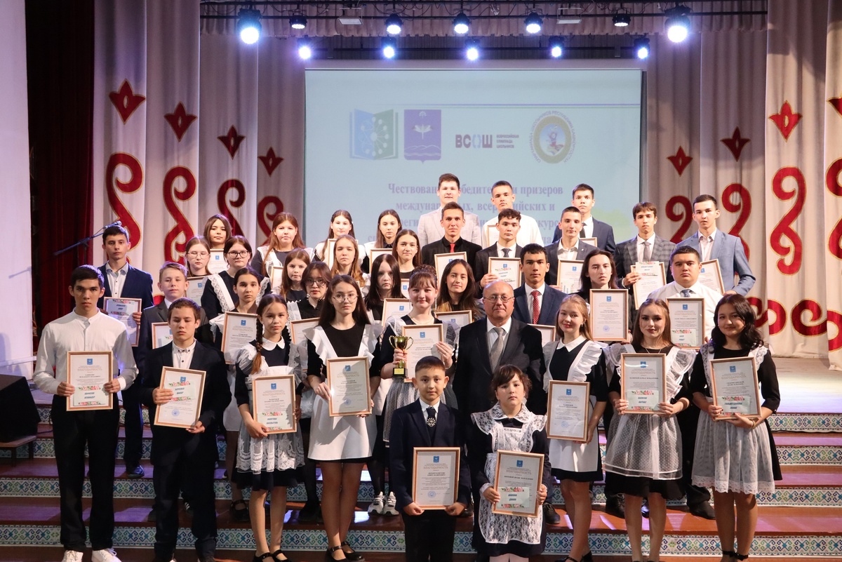 В актовом зале районного Дома культуры села Большеустьикинское состоялось праздничное мероприятие, посвященное чествованию талантливых детей Мечетлинского района Республики Башкортостан. Награды были вручены победителям и призерам всероссийских и межрегиональных олимпиад, конкурсов и спортивных соревнований, а также участникам муниципального конкурса "Ученик года - 2025" и их педагогам-наставникам. Более 40 юных дарований получили Благодарности и премии главы Администрации Мечетлинского района Республики Башкортостан. Фото: Администрация Мечетлинского района.