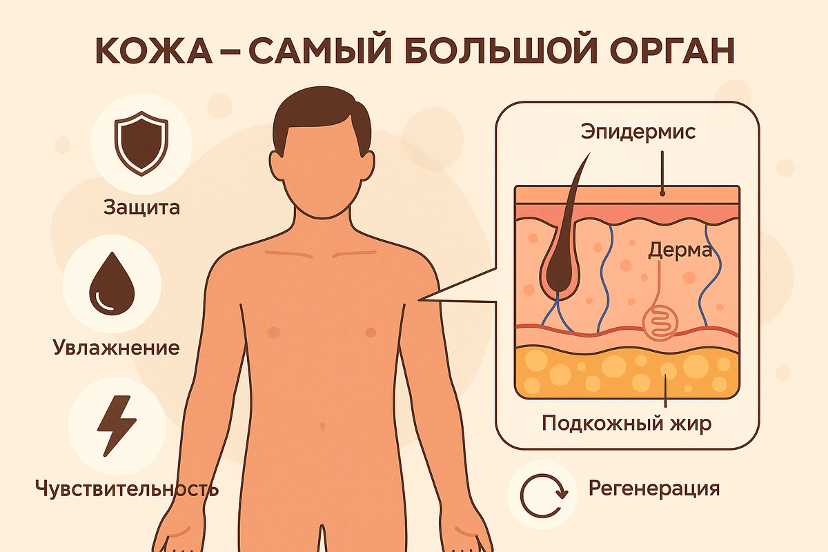 Когда речь заходит об органах человека, большинство людей в первую очередь вспоминает сердце, мозг, печень или легкие. Однако мало кто задумывается, что самый большой орган нашего тела –это кожа. Да-да, именно она, внешняя оболочка, которую мы часто воспринимаем лишь как защитную пленку, на самом деле выполняет десятки важнейших функций.