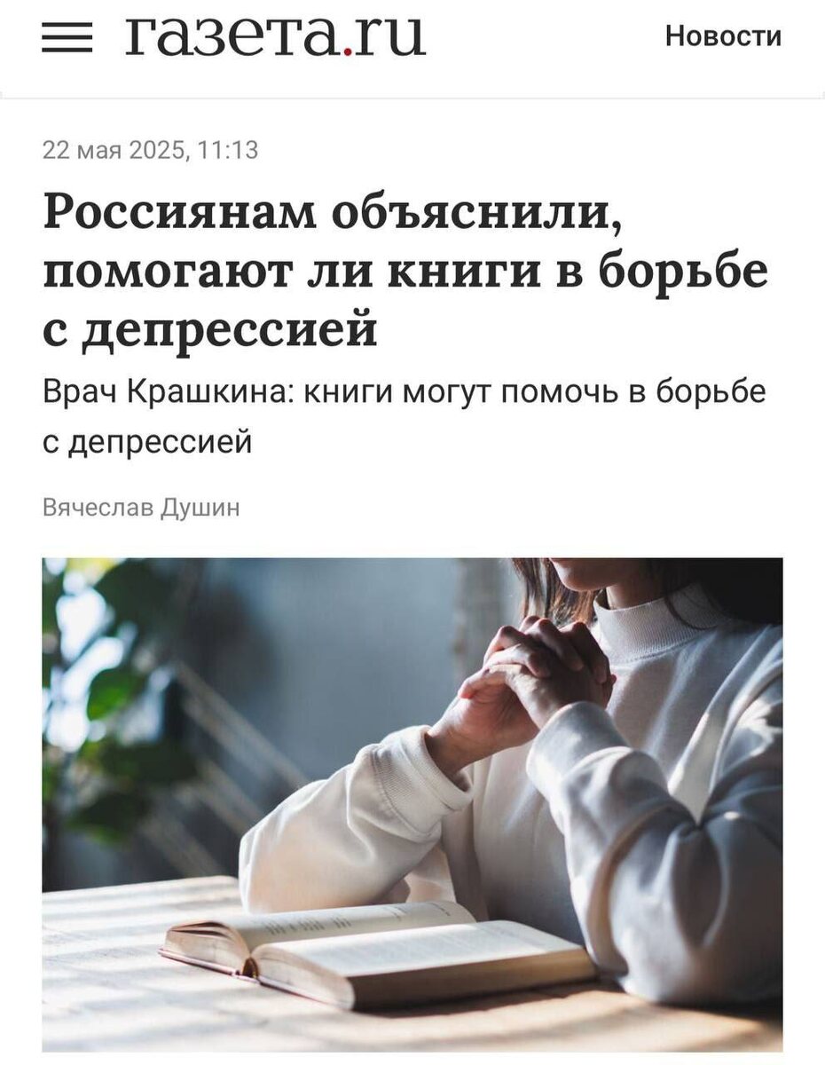 Книги помогают в борьбе с депрессией — чтение снижает уровень тревожности и помогает избавиться от чувства одиночества. Особенно полезны тексты, в которых описан опыт, схожий с вашим, сообщают врачи. Кроме того, учёные из США и Канады выяснили, что при депрессии активнее функционирует зона мозга, отвечающая за эмоции и внимание. Чтение воздействует на эту область и способствует улучшению психического состояния. NeuroFlux #ИИ #Технологии #наука #нейросети #ИнтернетСвобода #ИскусственныйИнтеллект