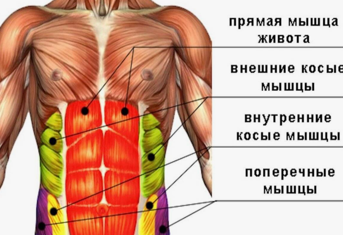 1. Прямая мышца живота (Rectus Abdominis): Те самые "кубики". Отвечает за сгибание позвоночника (скручивания, подъемы корпуса).