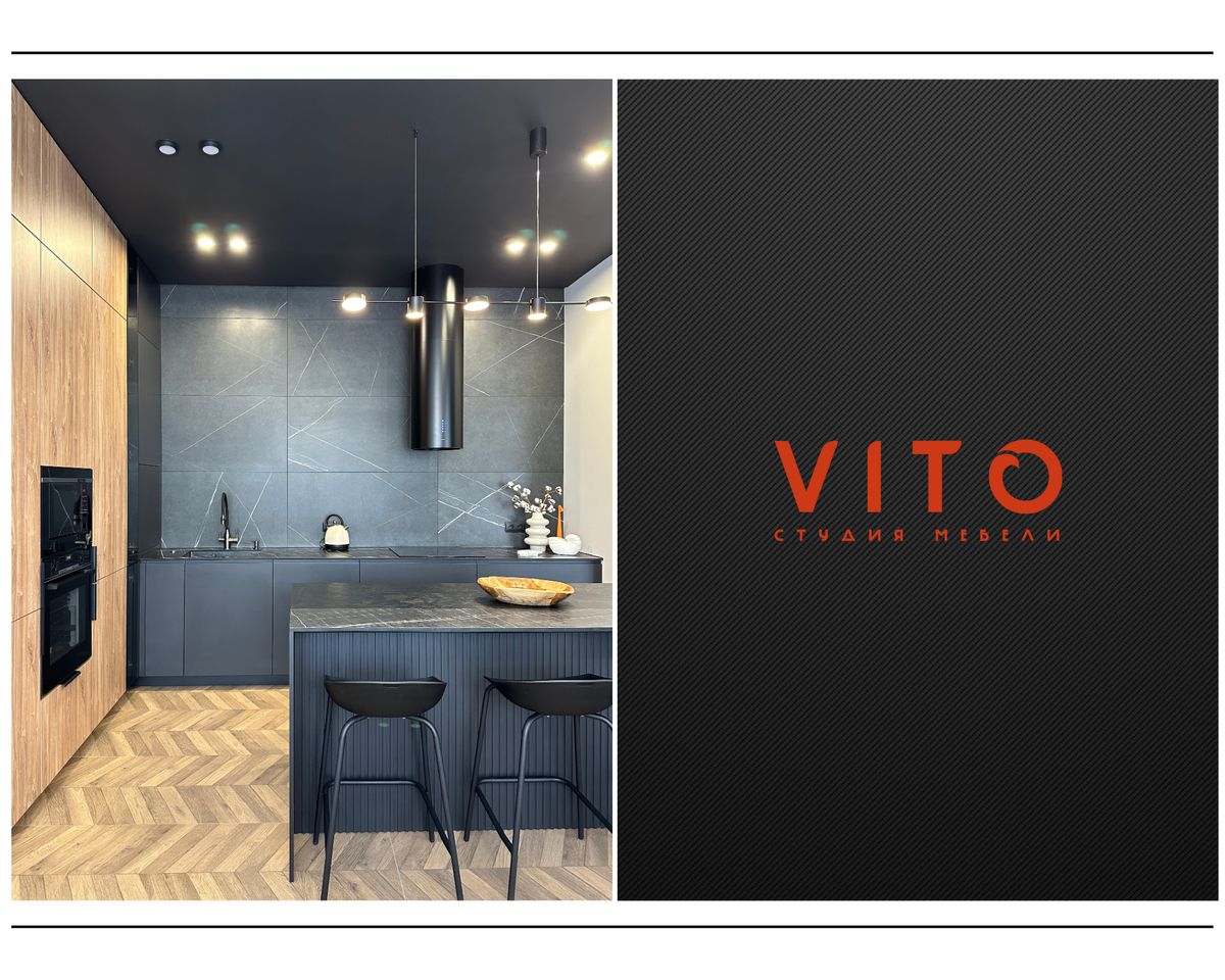 Габариты: основная зона — 2657×3779 мм, остров — 1836×820 мм. Этот проект — классический пример того, как чёткие линии, глубокие цвета и текстуры могут создать «дорогой» образ без излишеств. Кухня смотрится лаконично, но не "просто": чёрный потолок, тёплое дерево и столешница под камень задают интерьеру дорогой и презентабельный внешний вид. В этом проекте использована компакт-плита — современный и всё более популярный материал для столешниц, особенно в премиальных кухнях. Это монолитная многослойная структура, обладающая высокой плотностью и влагостойкостью. Мы подберём декоры, размеры и решения под вашу планировку.