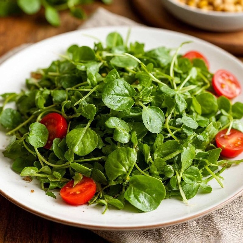 🌿 Кресс-салат: миниатюрный суперфуд с мощной пользой! Кресс-салат — это не просто украшение блюд, а настоящая витаминная бомба! Его мелкие листочки обладают ярким перечным вкусом и массой полезных свойств. Давайте разберёмся, почему его стоит добавить в рацион и кому с ним нужно быть осторожнее. ✅ Польза кресс-салата: 5 причин не пройти мимо 1. Рекордсмен по йоду: поддерживает здоровье щитовидной железы и метаболизм. 2. Витаминный заряд: Витамин С (сильный иммунитет) — в 100 г 72% дневной нормы! Витамин К (свёртываемость крови) + А (здоровье кожи). 3. Антиоксиданты: глюкозинолаты борются с воспалениями. 4. Минералы: кальций (кости), железо (энергия), магний (стресс). 5. Низкая калорийность: 32 ккал на 100 г — идеально для ПП. 🍽 Как использовать? Салаты: кресс-салат + авокадо + клубника + миндаль. Сэндвичи: замените листья салата на кресс — добавит пикантности. Супы: посыпьте перед подачей (как петрушку). Песто: смешайте с кедровыми орехами, пармезаном и оливковым маслом. Смузи: кре