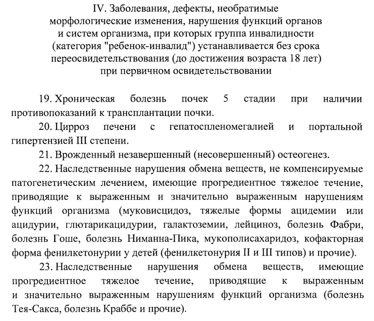 Обычно мы слышим: «Инвалидность сначала дают на год», «Потом надо проходить переосвидетельствование». И это правда для многих ситуаций. Но есть и исключения. Иногда — редкие, иногда — очевидные, но почти всегда — непростые. Есть ситуации, когда инвалидность устанавливается бессрочно сразу, уже при первом освидетельствовании. Без ожидания трёх лет. Без повторных комиссий. И да, это предусмотрено официально. Основание — Приложение к приказу Минтруда РФ № 588н, раздел 4 Перечня "правил признания лица инвалидом" которое включает перечень заболеваний, дефектов и состояний, при которых группа инвалидности (в том числе детям) устанавливается бессрочно либо до 18 лет. Все нюансы указаны в самом приказе. Здесь прописано: для установления бессрочной инвалидности недостаточно самого диагноза.