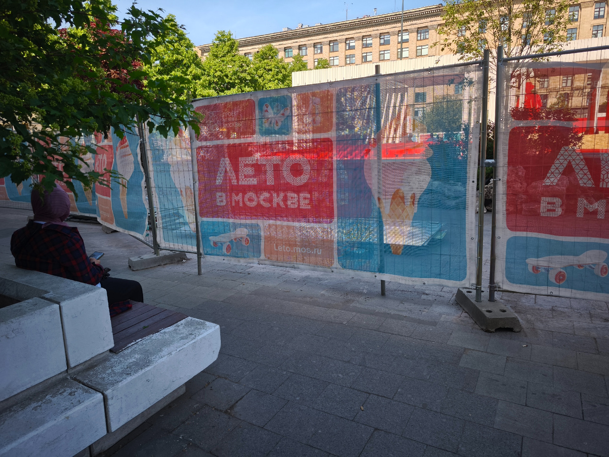 называется действо, проводимое в Москве уже не первый год. В прошлом году я побывала на одной из площадок - на Тверской площади. Там было организовано очень красивое цветочное пространство с чаепитием. В этом году туда пока не добралась, схожу обязательно и расскажу. А пока наблюдаю, как готовится ещё одна площадка - у станции метро "Маяковская" Через сетку и дырочки видно, что это будет что-то связанное с Владимиром Владимировичем (Маяковским) "Если звёзды зажигаются, значит это кому-нибудь нужно!" Фонтанами... Камнями ... И цветами Пока так - всё в упаковочной обёртке, заборах, сетках, но я надеюсь, что к 1 июня мы это увидим!