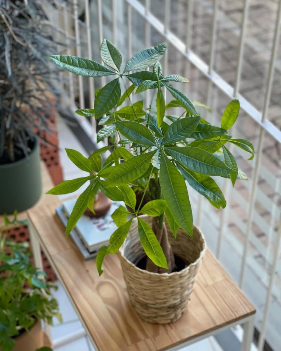 🌿 Пахира — это растение с крупными, пальчатыми, зелеными листьями и уникальным стволом