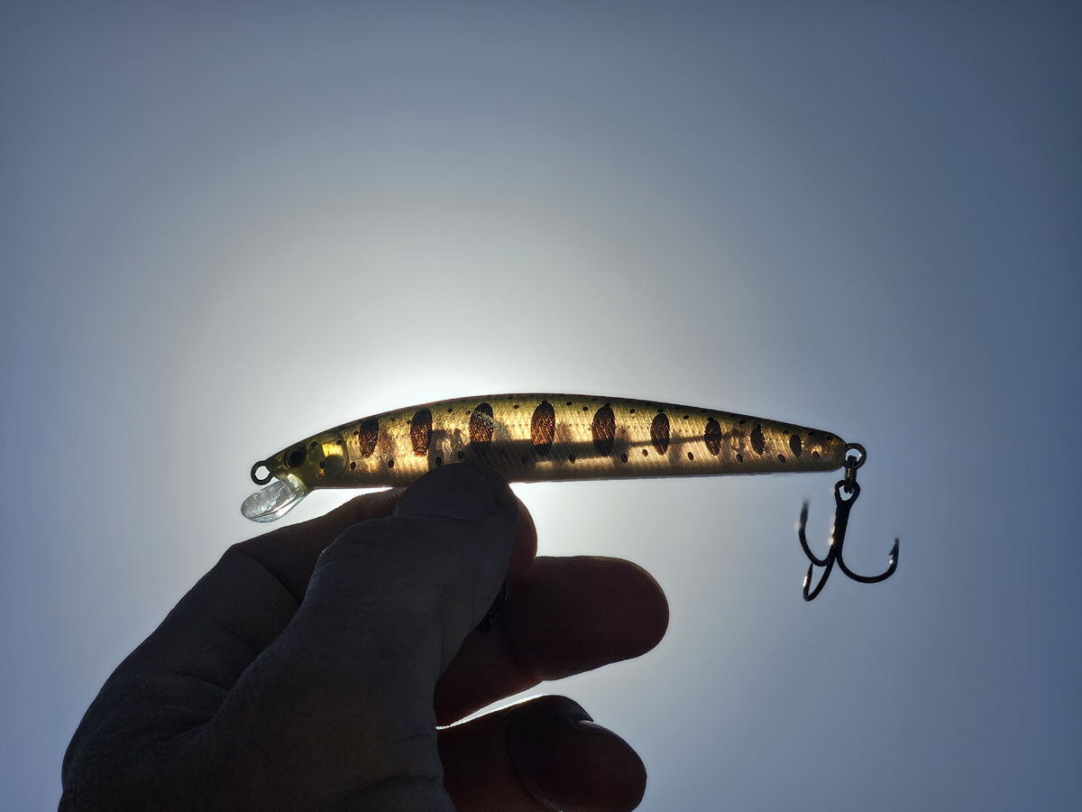 Заострю внимание на плавучести воблера. Да, он действительно плавающий, но с поводком-струной длиной 20 сантиметров становится медленно всплывающим. Вот его фишка, которой я изначально не ожидал! Это же праздник какой-то, сделать длительную паузу во время проводки, с возможностью даже шевельнуть слегка вершинкой спиннинга разок-другой, пока приманка не всплыла на поверхность с полуметра! А пауза, сделанная в нужное время и в нужном месте – лучший друг спиннингиста и злейший враг пассивного хищника, сомневающегося в целесообразности атаки на проплывающий мимо объект. Анаконда, по факту, отличный провокатор, но не одним только зависанием на месте оценивается работа приманки.