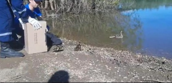 В Уфе утка с утятами пыталась перейти дорогу с интенсивным движением на улице Менделеева, полностью игнорируя светофоры. Пернатых нарушителей заметил 16-летний горожанин и понял, что должен вмешаться. Сначала он попробовал наставить утиное семейство «на путь истинный», направляя их по другому маршруту, а когда это не удалось, обратился за помощью по номеру «112». На место прибыли сотрудники поисково-спасательного отряда Управления гражданской защиты города. Они отловили неразумную мать с потомством, вывезли птиц в безопасное место и отпустили, сообщили в пресс-службе ведомства. Фото: скриншот видео УГЗ Уфы.
