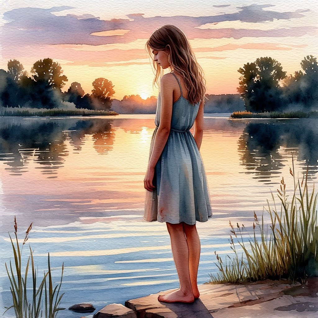 Итак, жила-была маленькая девочка, которая очень хотела научиться плавать. Каждый день она приходила к озеру и долго стояла на берегу, глядя, как другие дети радостно плещутся в воде. Ей казалось, что все они родились умеющими не бояться глубины, а она — единственная, кто замирает у самой кромки воды.