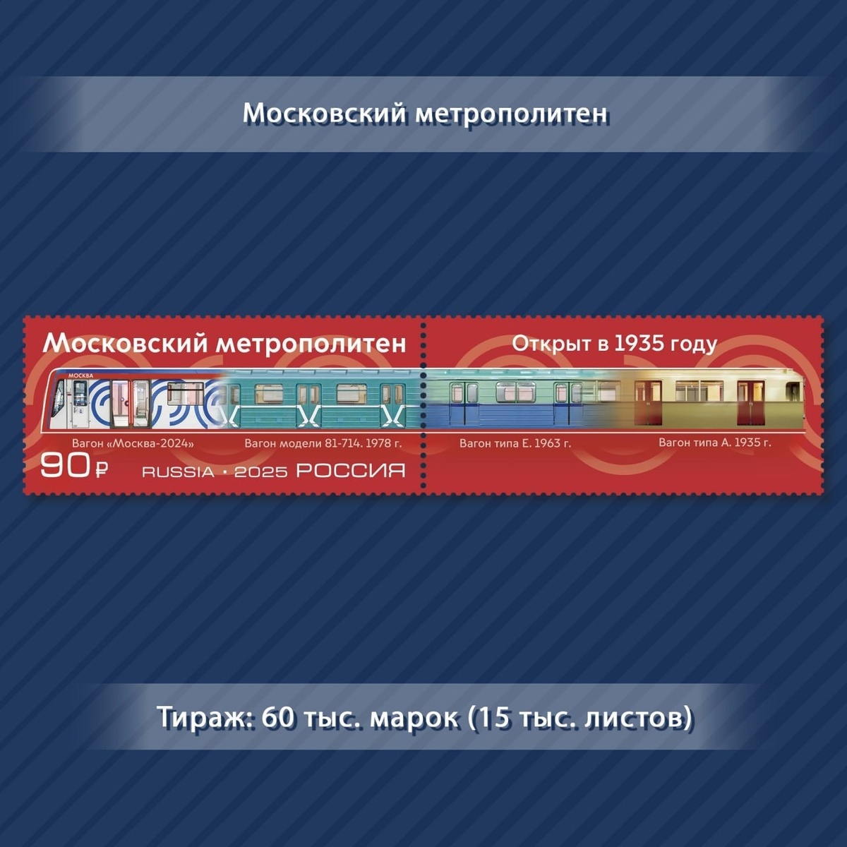 28 мая состоялась презентация новой почтовой марки, посвященной Московскому метрополитену. На марке изображены современные вагоны «Москва-2024» и модель 81-714, а на купоне можно увидеть исторические вагоны типов Е и А. Московский метрополитен занимает особое место в истории отечественного транспорта, являясь первым и крупнейшим метрополитеном в СССР и России. Сегодня он входит в число крупнейших метрополитенов мира. 15 мая 1935 года состоялось открытие первой линии метро, протяженностью 11,2 километров. Маршрут проходил от станции «Сокольники» до «Парка культуры» с ответвлением до «Смоленской». Инициатором этого масштабного проекта выступил руководитель московской партийной организации Л.М. Каганович. За прошедшие годы московское метро значительно расширилось. На сегодняшний день система включает: Важно отметить, что в общую протяженность не включены монорельсовая дорога, Московское центральное кольцо (МЦК) и Московские центральные диаметры (МЦД). В рамках выпуска марки также были под