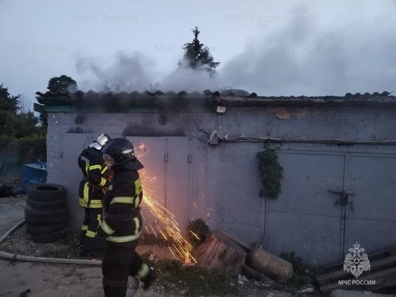 Накануне вечером в Орле тушили пожар в гараже.🚒 Сообщение поступило около 9 часов вечера. Пожар возник в одном из боксов в гаражном кооперативе в Советском районе Орла. В региональном МЧС сообщили, что в момент прибытия пожарного расчета из-под кровли шел густой дым. Пожарные вскрыли ворота гаража с помощью бензореза, чтобы добраться до очага возгорания и устранить его. Огонь потушили, не дав ему распространиться. В гараже обрушилась часть кровли, а также сгорели находившиеся внутри предметы быта. Пострадавших нет. Причина пожара сейчас устанавливают эксперты. (Фото: ГУ МЧС России по Орловской области) @1oblastnoi