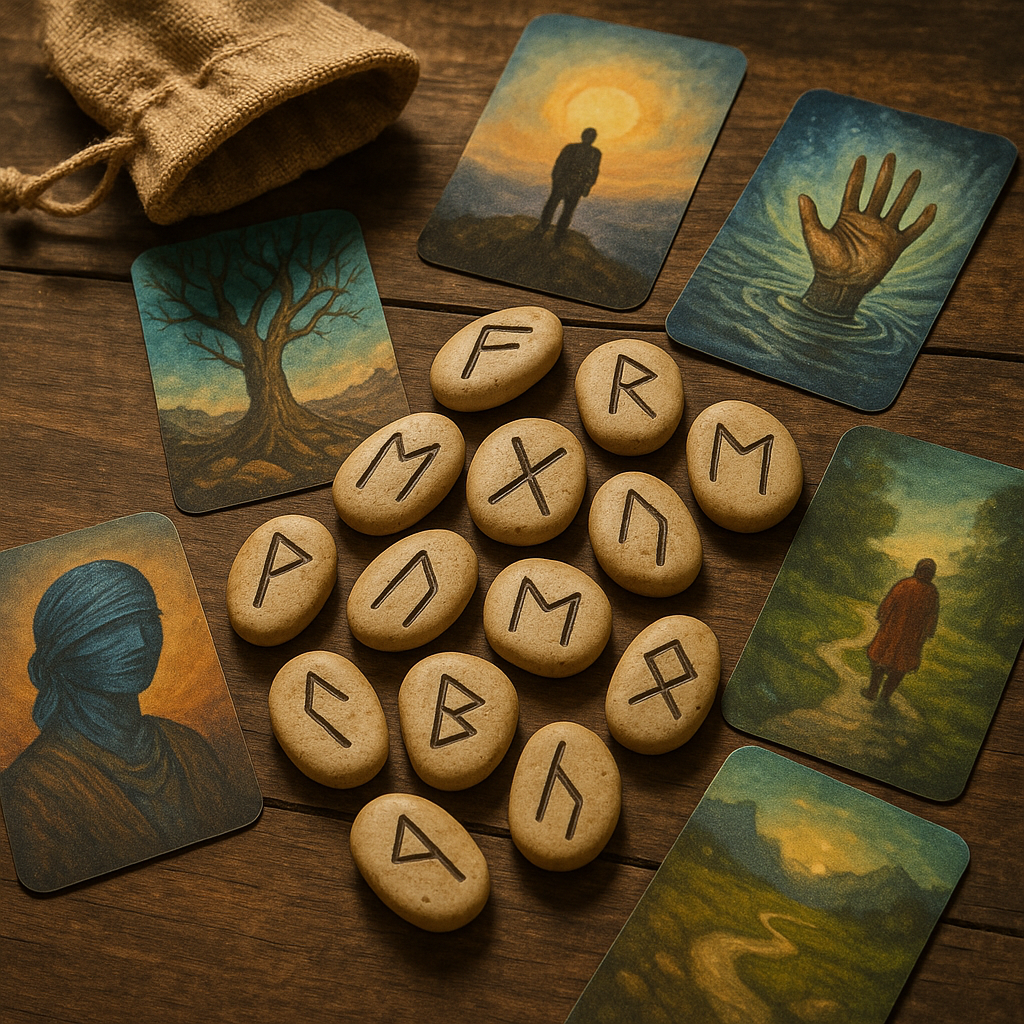 Современные практики всё чаще соединяет инструменты, которые раньше воспринимались как противоположности. Метафорические ассоциативные карты (МАК) — инструмент, прочно обосновавшийся в психологической практике. Руны — символическая система, с древних времён имеющая сакральный смысл. Их синтез — это реально мощный способ углубления работы с запросом. Разберёмся, как можно соединить эти инструменты и что может дать их совместное использование. На первый взгляд, это конечно разные языки. МАК — визуальный, метафорический, психотерапевтический. Руны — символический, архаичный, сакральный. Но если убрать эти рамки и смотреть глубже, видно: и те и другие работают с бессознательным. С образами. С внутренним миром человека, к которому он ещё не дошёл логикой, но которую может почувствовать. Когда человек смотрит на метафорическую карту, он не получает ответа «снаружи» — он читает свои ассоциации. То же происходит и с руной: её значение не трактуется как предсказание, оно резонирует с внутренни