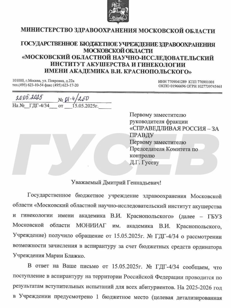 Бюджетное место — герою 💪 Московский областной научно-исследовательский институт акушерства и гинекологии отреагировал на наш запрос. Мы предложили зачислить ординатора Марии Блажко в аспирантуру за счёт бюджета. Девушка героически приняла роды на станции метро «Чистые пруды». Институт сообщил, что в 2025–2026 учебном году доступно одно бюджетное место для аспирантов. Зачисление будет проводиться по итогам вступительных испытаний. «Решительность и профессионализм ординатора ГБУЗ Московской области МОНИИАГ им. академика В.И. Краснопольского Марии Блажко, проявленные при принятии родов на станции метро «Чистые пруды» будут учтены при проведении вступительных испытаний», — говорится в ответе директора МОНИИАГ Романа Шмакова. Подвиг учтут на экзаменах 🤝