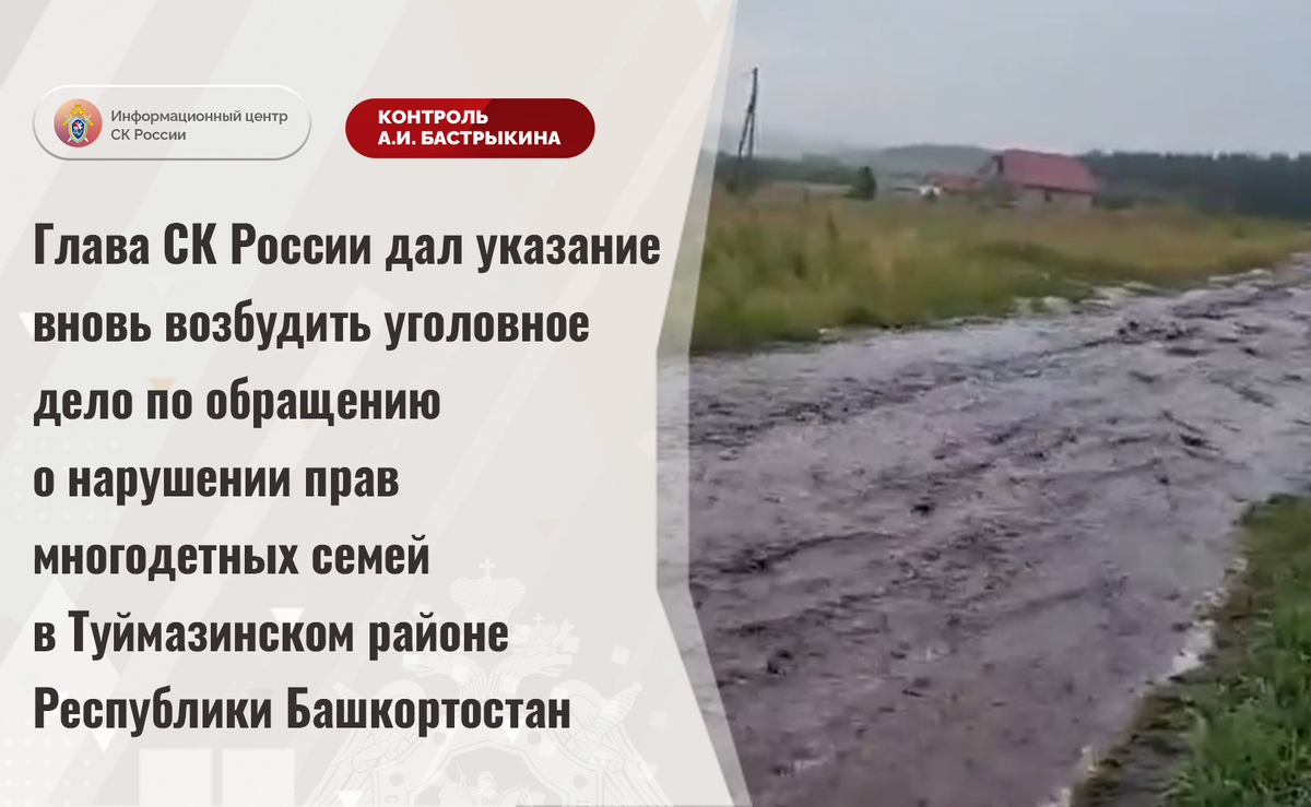 Глава СК России дал указание вновь возбудить уголовное дело по обращению о нарушении прав многодетных семей в Туймазинском районе