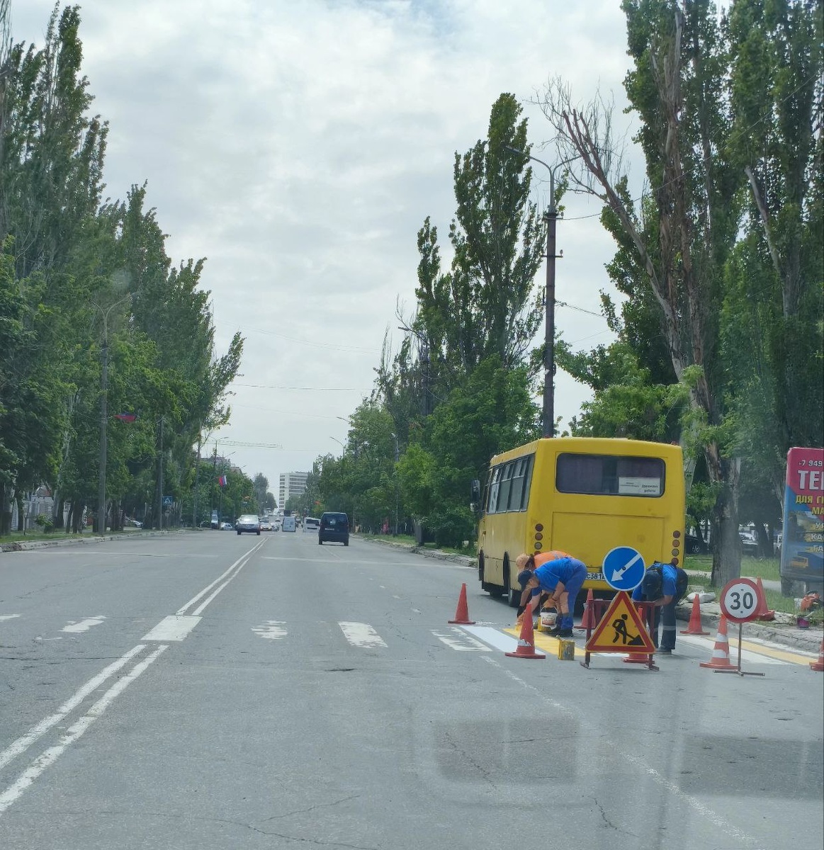 🛣 В Мариуполе на пр. Металлурго обновляют дорожную разметку.