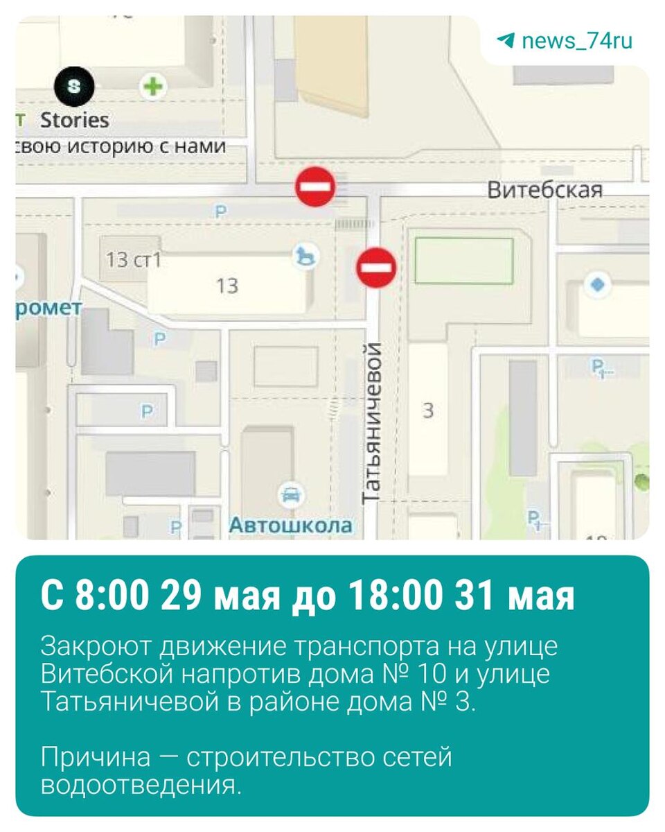 +1 в копилку перекрытий До конца мая закроют движение на пересечении улиц Витебская и Татьяничевой.