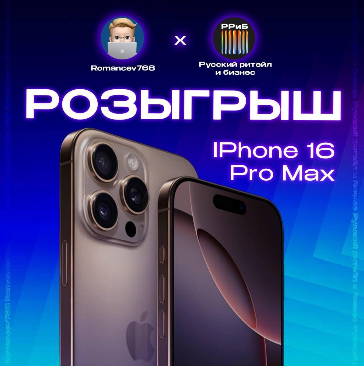 С ребятами из @retailrus подарим новенький iPhone 16 Pro Max 256Gb — победитель сам выберет его цвет.