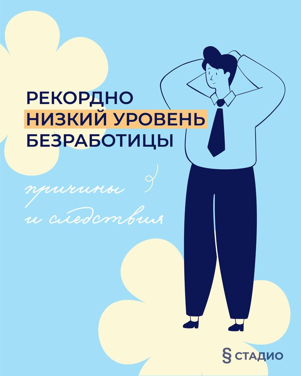 Кажется, рекордно низкий уровень безработицы - это хорошо? Но что это вообще значит? 1️⃣ Для начала давайте разберёмся, кто же такие безработные? ➡️ Безработными считаются только те граждане, которые трудоспособны и при этом находятся в активном поиске работы и готовы приступить к ней. Например, домохозяйка, которая занимается семьёй и не имеет собственного дохода, не будет считаться безработной. 2️⃣ По данным Росстат в январе 2025 года уровень безработицы достиг аж 2,4%, что в разы отличается от статистики за последние 20 лет. Но давайте разберёмся, почему это происходит? ➡️ Выход старших поколений на пенсию ➡️ Отток молодёжи за рубеж или в образование ➡️ Рост спроса на “синие воротнички” — курьеры, сборщики, продавцы ➡️ Бум малого бизнеса — появляются новые компании, которым нужны руки и гибкие помощники 3️⃣ И всё-таки: хорошо это или не очень? ➡️ На поверхности — да: 🛑Легче устроиться без диплома 🛑Работодатели готовы переплачивать за навыки 🛑Молодёжь может стартовать карьеру у