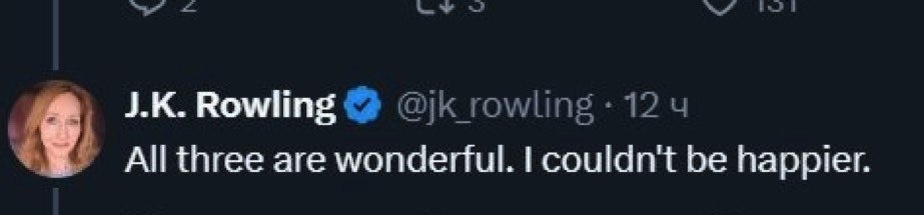 В ответ на пост Писательница Джоан Роулинг отреагировала на назначения актеров на главные роли в будущем сериале "Гарри Поттер". Джоан, которая придумала их и выступает исполнительным продюсером проекта, написала, что "они замечательные, а она очень счастлива". Сериал выйдет в 2027 году. Так что эти милые мордашки еще чуть изменятся. https://dzen.ru/id/6232fceaae10d56457313636