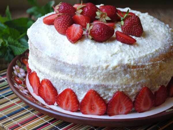 В сезон ягод можно приготовить ягодный торт или пирог. Ягоды свежие и ароматные, выращенные у себя в саду или купленные у бабушек и фермеров, сделают ваш торт вкусным. Торт можно сделать просто, чтобы полакомиться или как сладкое угощение для гостей. Времени на его приготовление нужно не много, сложность изготовления минимальная, а вот наслаждение от продукта масса. Каллорий тоже! Поэтому всего нужно есть в меру! Если не испечь такой торт из ягод в сезон сбора, то тогда вы уже не получите такого удовольствия, если захотите сделать ягодный торт в несезон или из замороженных ягод. Это уже будет совсем не то! Ягоды для такого торта лучше выбирать сладкие, иначе никаким сахаром излишнюю кислоту не убрать. Для теста: 200 гр. майонеза, 2 стакана сахара, 4 яйца, 150 гр. сметаны, 2 стакана муки, 0,5 ч. ложки соды, кулинарный жир, 300 гр. ягод Для крема: 2 стакана сметаны, 100 гр. сахарной пудры Нужно растереть яйца с сахаром, добавить майонез, сметану, соду, погашенную уксусом, соль и все