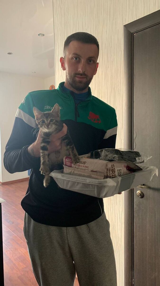 кошка-лев.рф Дмитрий с Космосом, бывшим подопечным нашего приюта🤍 Благодаря нашим спонсорам котик едет в семью уже с приданым😁 Лоточек, миска и пакет корма🎁