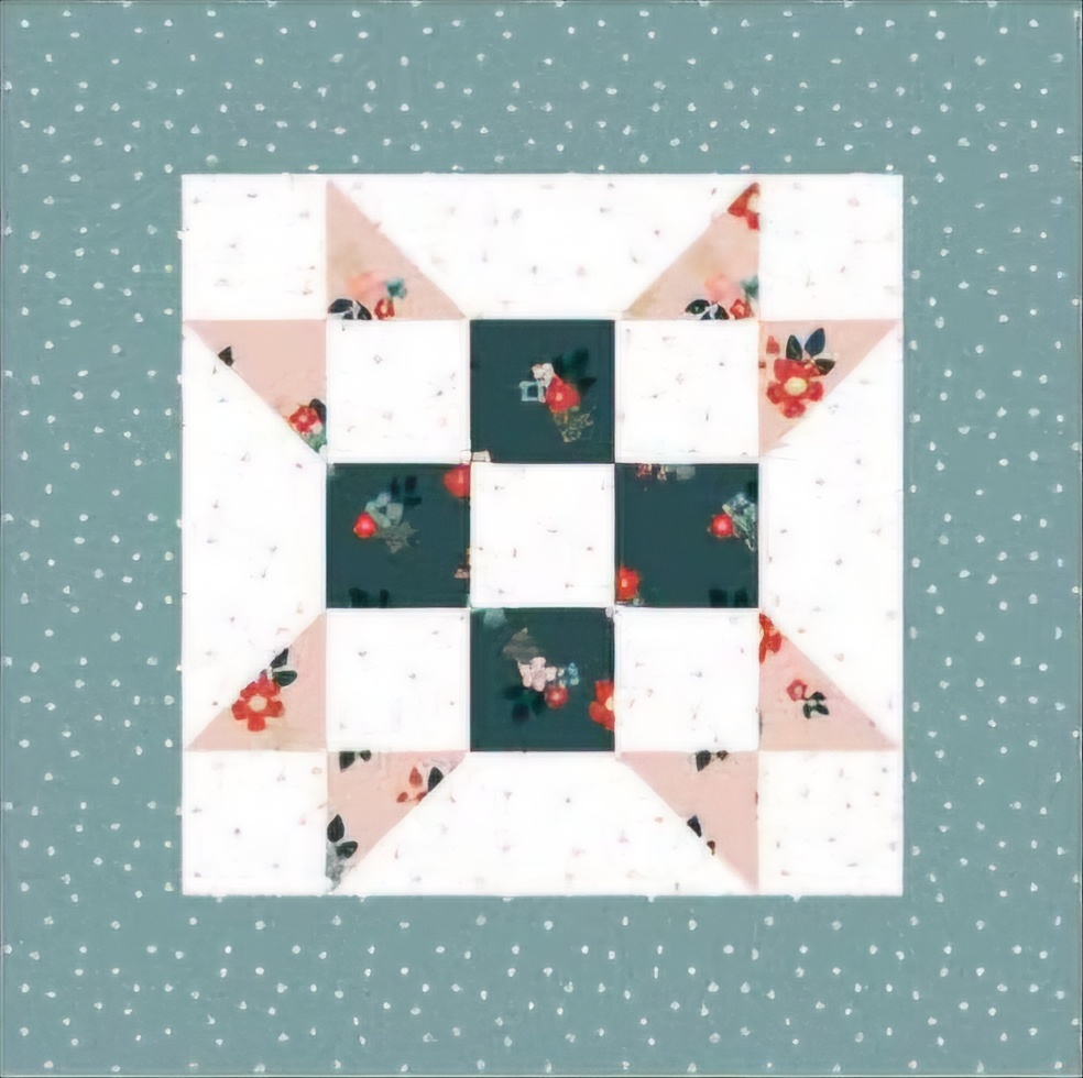 На сайте www.rileyblakedesigns.com можно скачать все блоки проекта. Размер готового блока центра 10” x 10”. Размер готового блока центра с цветной полосой (бордюром) - 15” х 15”. Инструкции по раскрою Фоновая ткань: C – 4 прямоугольника размером 2 1/2 ” х 6 1/2”. D – 9 квадратов размером 2 1/2 ” х 2 1/2”. Цветная ткань: E - 4 квадрата размером 2 1/2 ” х 2 1/2”. F - 8 квадратов размером 2 1/2 ” х 2 1/2”. K – 2 прямоугольника 3” х 15 1/2”. L - 2 прямоугольника 3” х 10 1/2”. Инструкции по шитью. 1. Начертить диагональ на изнаночной стороне квадратов F. 2. Согласно схеме ниже совместить квадрат F с левой стороной полосы С и проложить строчку по диагонали. Обрезать излишки на расстоянии 1/4” от диагонали и разутюжить. Повторить процесс с правым углом полосы С, обращая внимание на направление диагонали. Сшить 4 детали. Размер детали с припусками 2 1/2 ” х 6 1/2”. 3. Сшить центр блока по схеме из 4-х квадратов Е и 5-ти квадратов D. Сшить 1 деталь. Размер детали 6 1/2 х 6 1/2". 4.