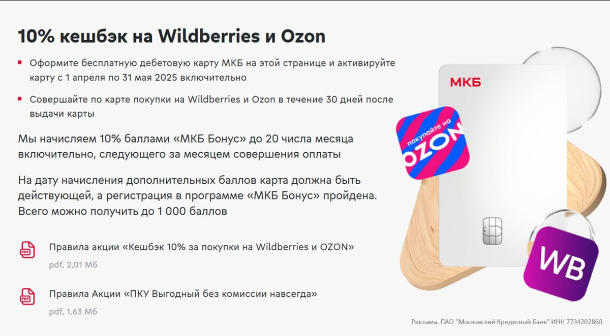 10% на Ozon и WB по дебетовой карте МКБ (до 31.05.25)