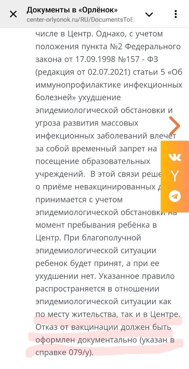 Друзья❗❗❗ Будьте предельно внимательны, готовя документы к заезду, особенно во ВСЕРОССИЙСКИЕ ДЕТСКИЕ ЦЕНТРЫ!!! (СМЕНА, ОРЛЁНОК, АРТЕК) Вашего ребёнка Центры имеют право не принять, если будут не корректно оформлены медицинские документы. Оформление должно быть в соответствии с нормами закона о здравоохранении. Врачи должны быть осведомлены. В памятке может быть не написано, как правильно оформить конкретный документ, но это - норма закона, по которому работают медики. Но❗❗ ребёнок - Ваш, а не врачей, принимать или не принимать будут его, а не врача. Поэтому я обращаю Ваше внимание на подробности, изложенные в памятке, у нас на сайте, на сайте лагеря. Особенно показательны памятки по Орлёнку. Там всё расписано досконально, с отсылкой на норму права- почему это должно быть предоставлено и в какой именно форме. Читайте внимательно памятки, наш сайт в разделе подготовки документов на заезд, контролируйте врачей, проверяйте наличие необходимых печатей и штампов ( подробно в видеорол