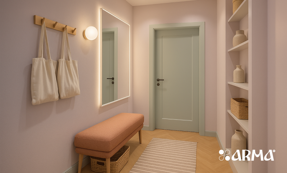 - Яркие акценты (двери, рамки, текстиль) – добавляют динамику и настроение.