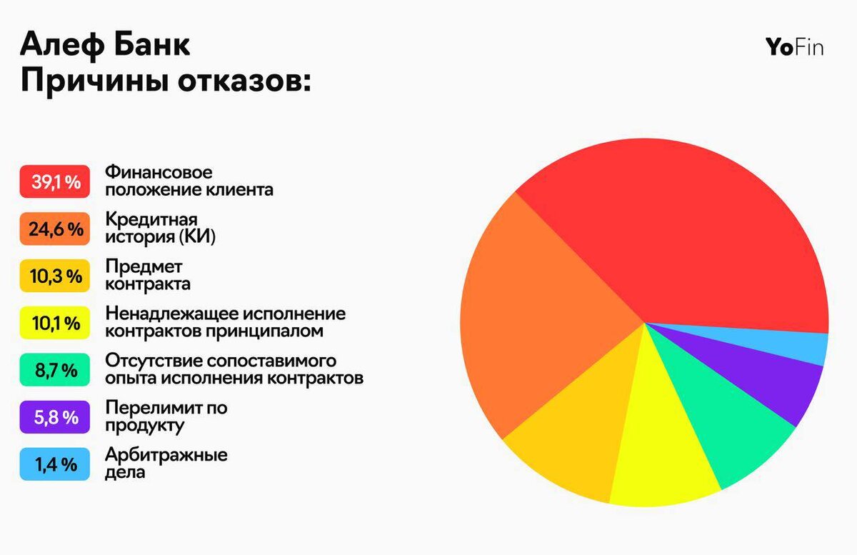 ПРОЖАРКА АЛЕФ-БАНКА: ПЕРВЫЕ ИТОГИ👍 На прошлой неделе мы запустили прожарку второго банка-партнера платформы: Алеф-Банка. В диаграммах собрали первую аналитику и выводы: • по конверсии и эффективности отработки заявок; • по выдачам и доработкам; • по скорости рассмотрения. А еще мы проанализировали самые частые причины отказов. Дисклеймер: ими стали финансовое положение и кредитная история клиента🫢 🖇️Детальный разбор заявок в Алеф-Банк в карточках. А список Банков, одобривших отказы Алеф-Банка, РАСКРЫЛИ В НАШЕЙ СТАТЬЕ📩 Ваш @yofin